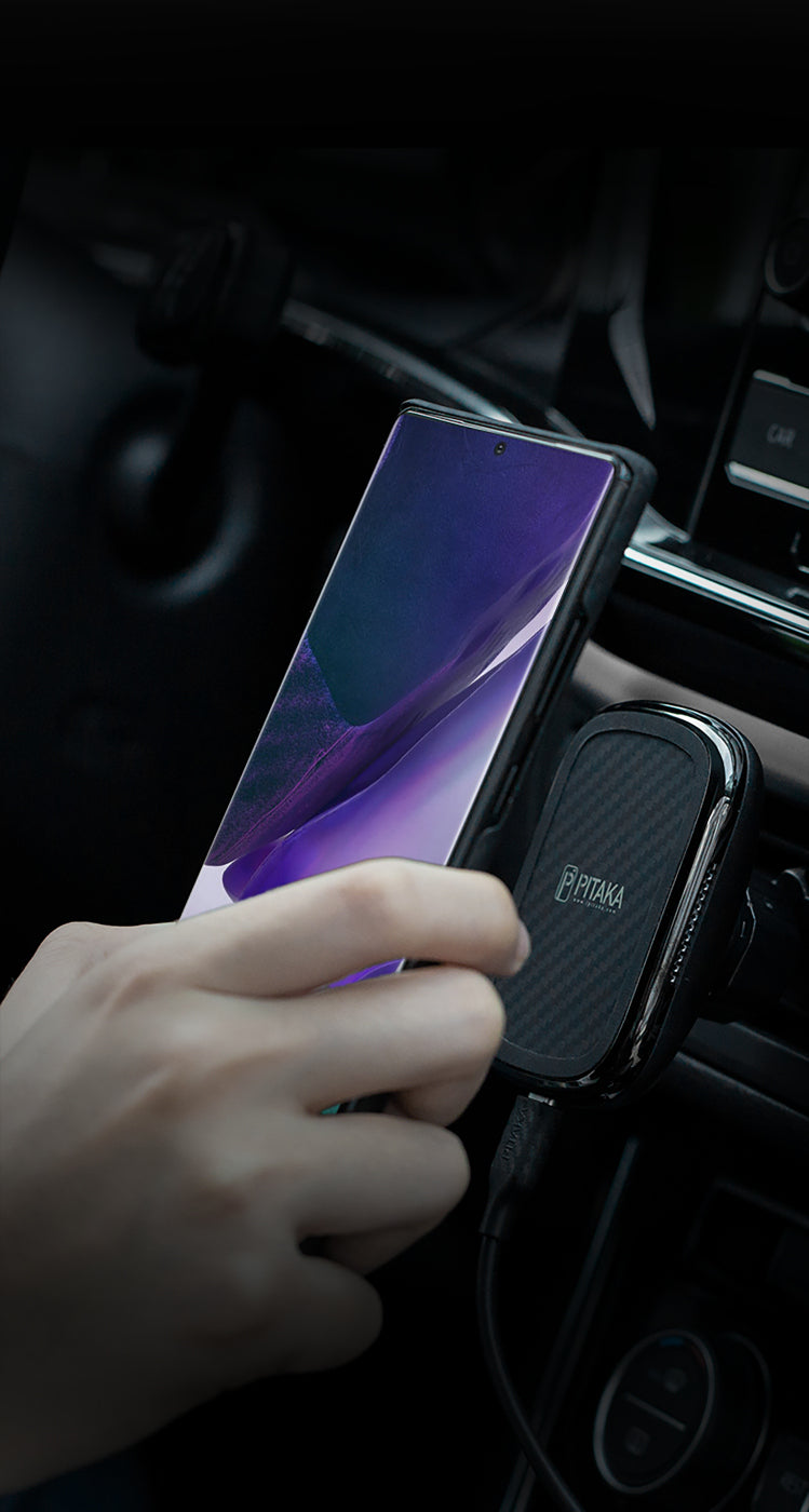 Use the MagEZ Mount Qi for stable in-car wireless charging. For the Note 20 Ultra, add the specially designed form-fitting adapter to your MagEZ Mount Qi.